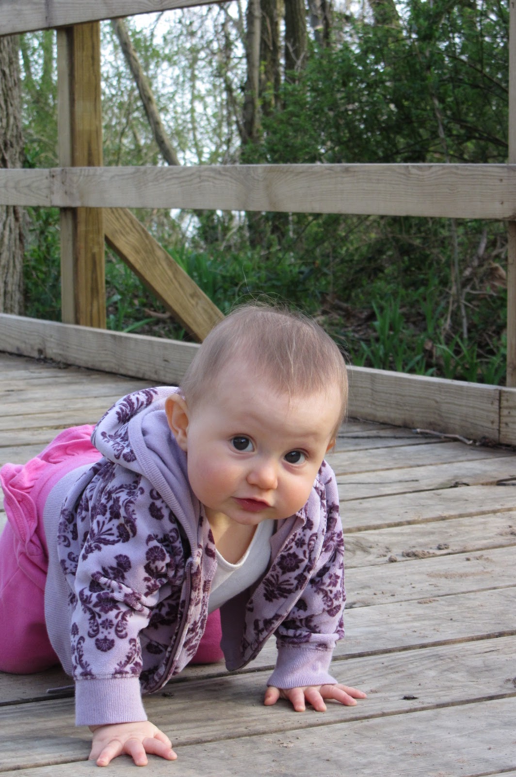 Andie can pull herself up to stand now and has started moving around holding onto things. I am pretty sure she is teething so she has been a little more whiny and started to take a binky.